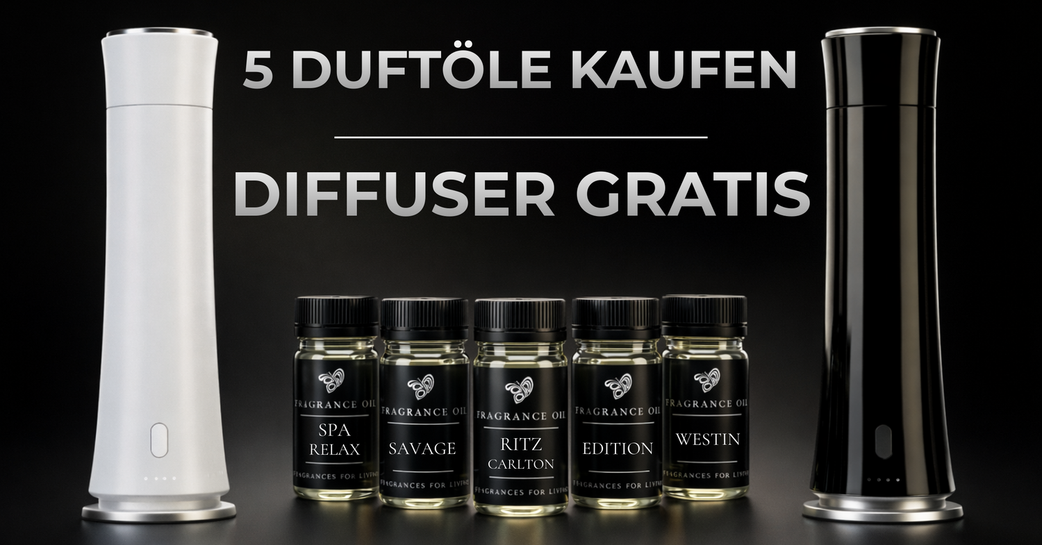 Duft für Diffuser ist ein speziell formuliertes Aromaöl oder Duftkonzentrat, das in Aroma Diffuser Geräten eingesetzt wird – sei es per Kaltvernebelung, Ultraschall oder mit Wärmetechnologie. Es wird in feinste Partikel zerstäubt und verteilt sich gleichmäßig im Raum, um ein angenehmes, langanhaltendes Dufterlebnis zu erzeugen. Unsere Duftöle sind hochkonzentriert, langanhaltend und auf maximale Verträglichkeit und Duftwirkung optimiert.