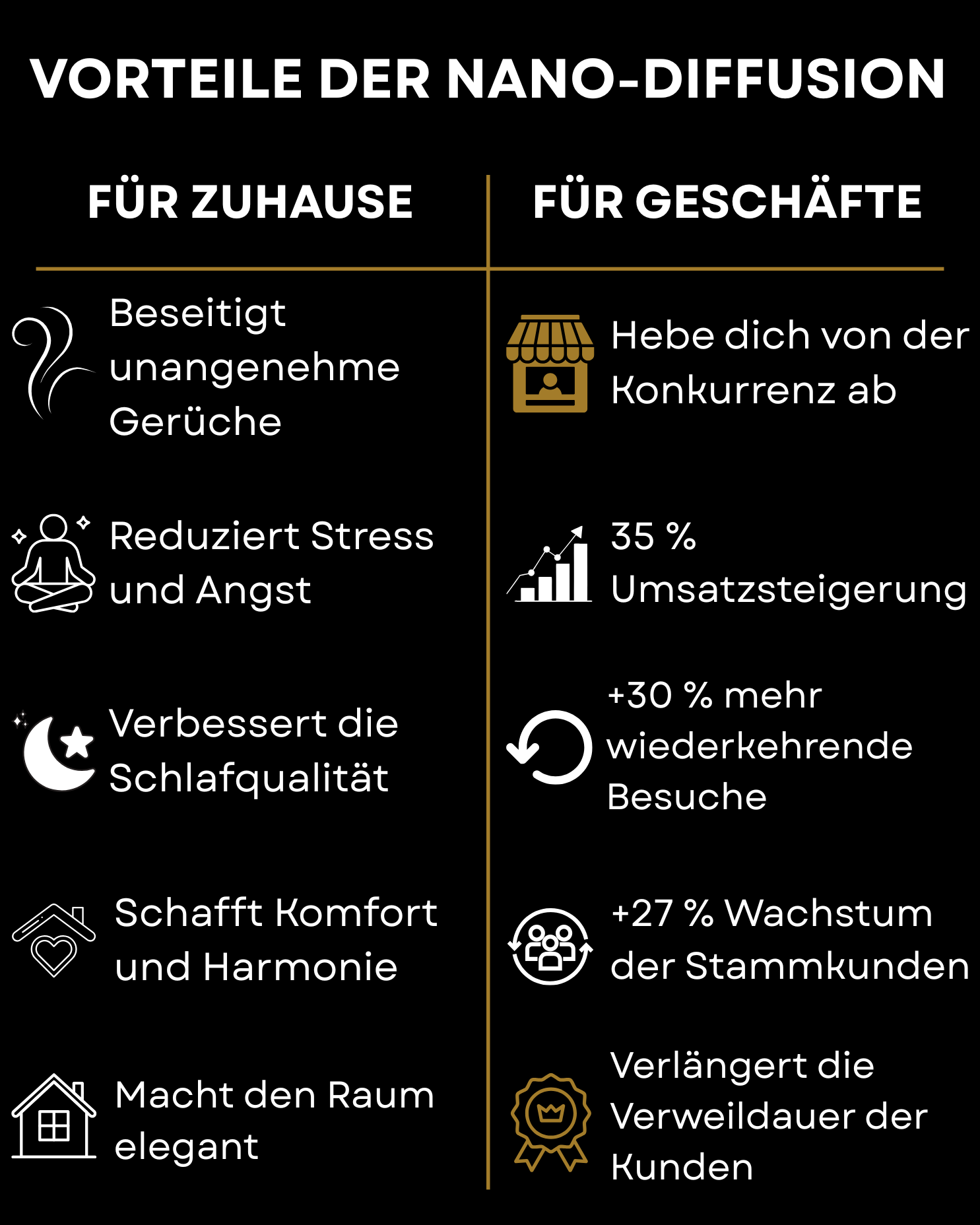 Perfekt als Diffuser für gewerbliche Raumbeduftung und als Duftmaschine für zuhause.