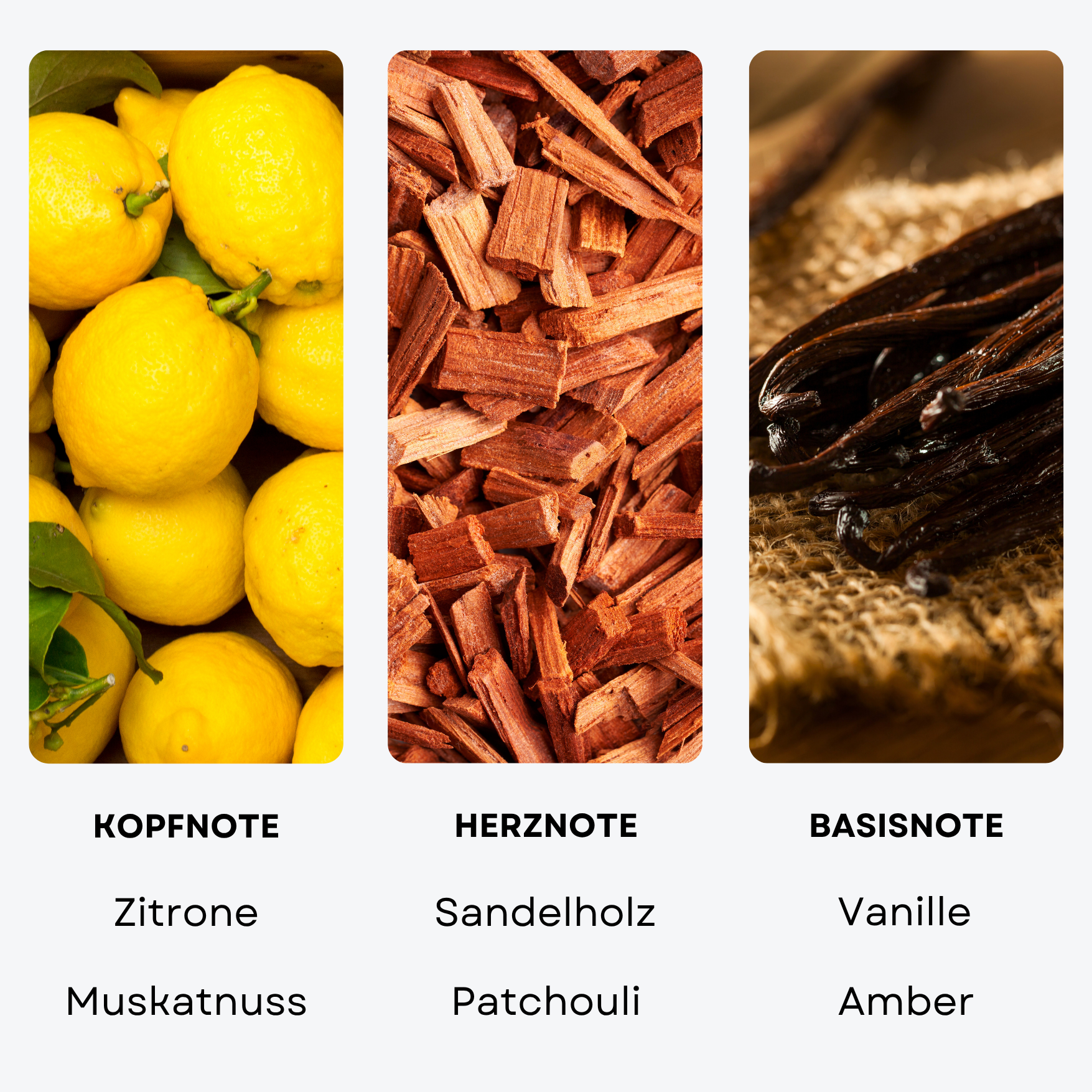 Verfügt über 3 Duftstufen, die sich nacheinander entfalten, ähnlich einem Parfüm für Körper oder Kleidung