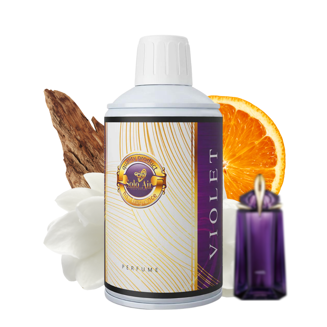 "Violet – Ein Parfümduft, der keine Angst davor hat, anders zu sein. Das einzigartige und spezifische Aroma von Ambra und holzigen Noten ist einfach nicht zu verwechseln"