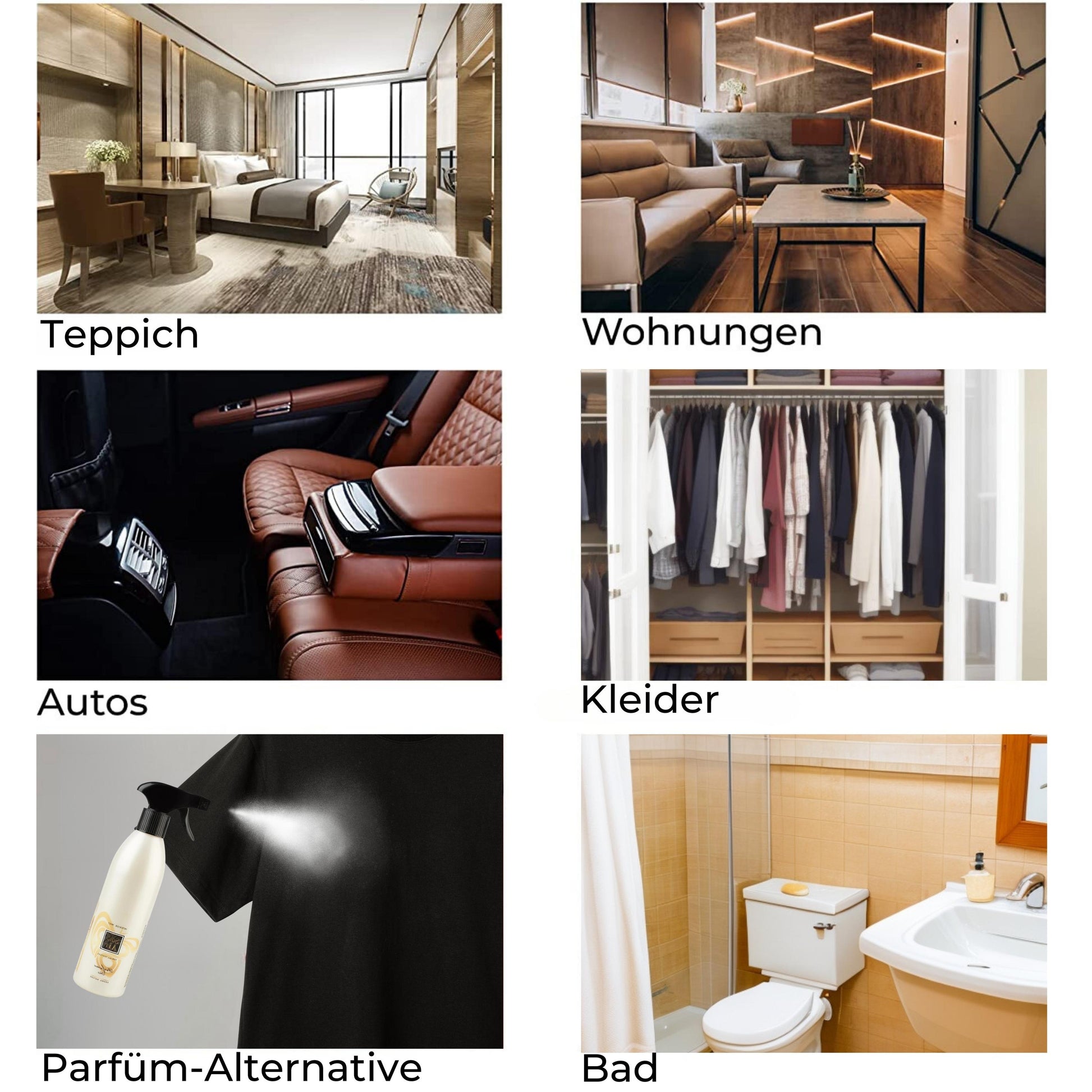 Unsere vielseitigen Möglichkeiten: Raumspray, Textilerfrischer spray, Duftspray für Kleidung, Geruchsneutralisierer und Autoparfüm